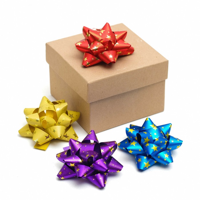 Бант-звезда №7,5, металик с рисунком, МИКС