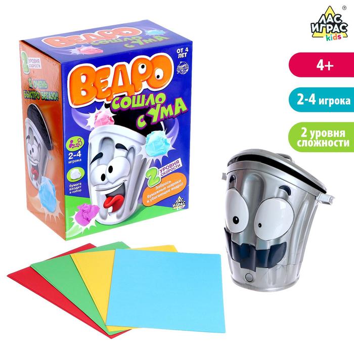 Цель игры – забросить все свои бумажные шарики в движущееся ведро. У кого первым получится это сделать – тот и победитель!