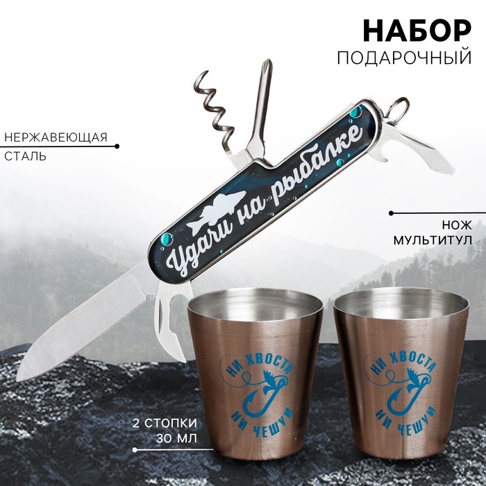 3009144 Подарочный набор мужской «Лучший рыбак»: нож мультитул, стопки 2 шт х 30 мл