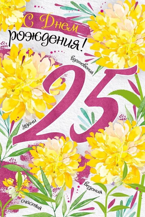 3304400 Открытка «С Днем рождения! 25 лет» Желтые цветы А5