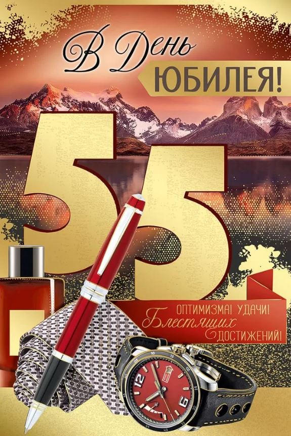 3327800 Открытка «С Юбилеем! 55 лет» Часы А5