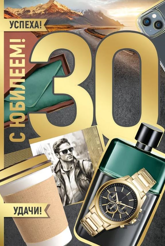 3328000 Открытка «С Юбилеем! 30 лет» Часы А5