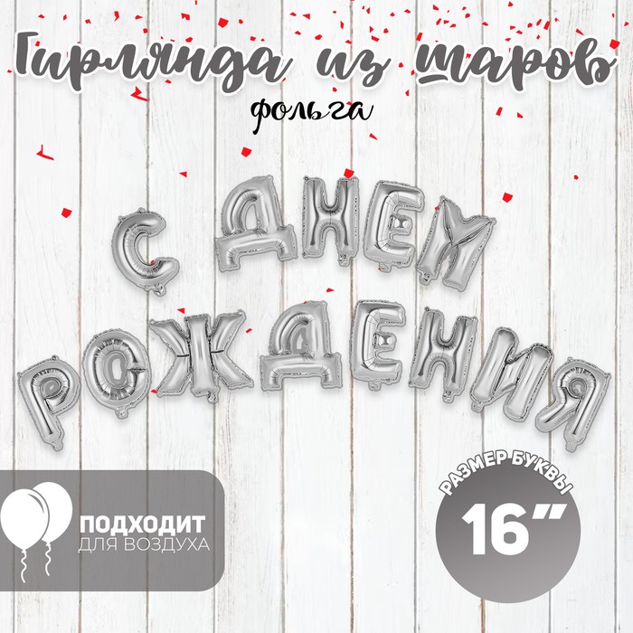 3664906 Гирлянда шар фольгированный «С днем рождения» 16″, цвет серебро