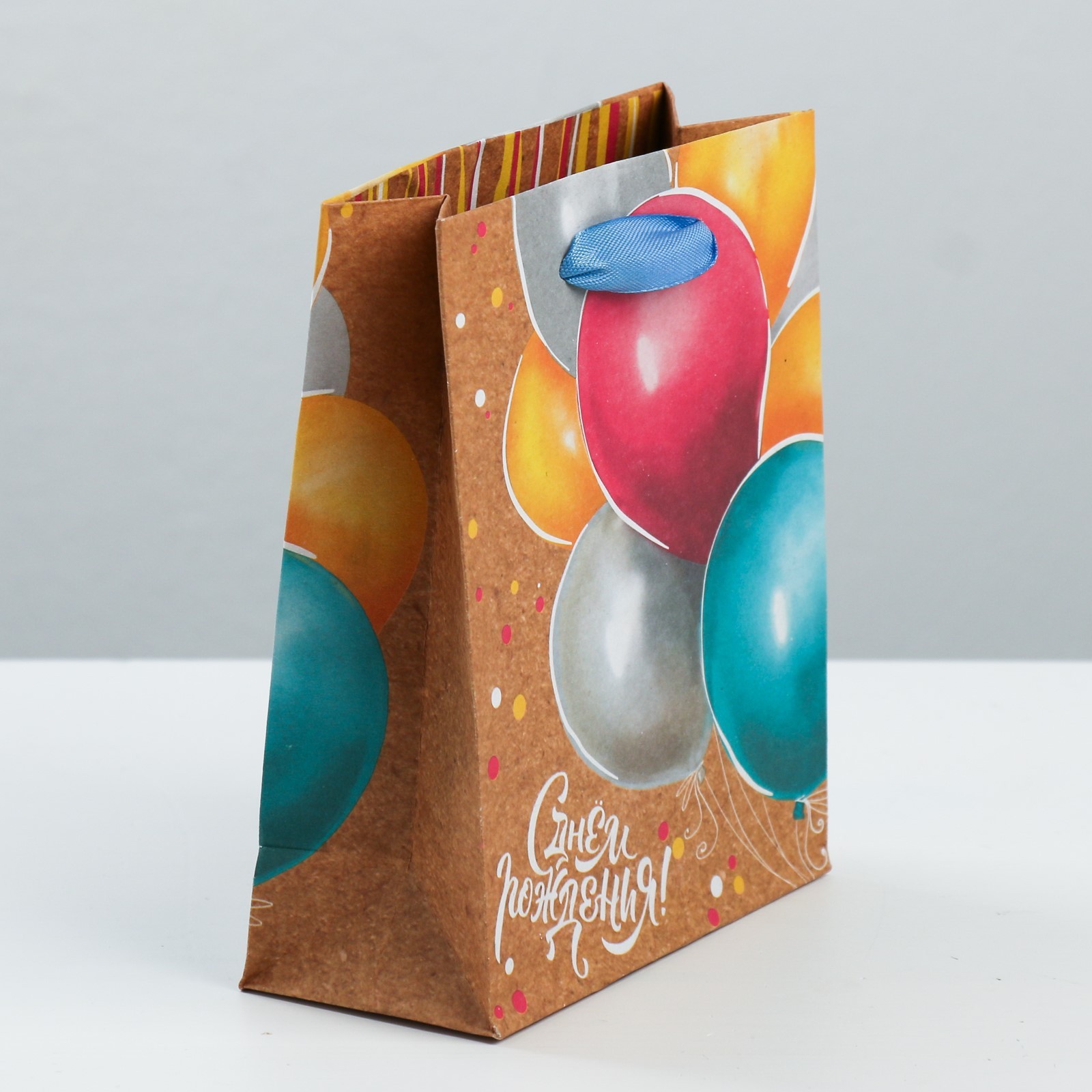 3680687 Пакет подарочный крафтовый «Весёлый праздник», 12 х 15 х 5.5 см
