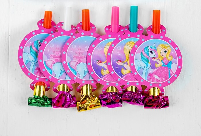 3853019 Язычки-гудки «Принцесса Мия и единорог», с накладкой, набор 6 шт.