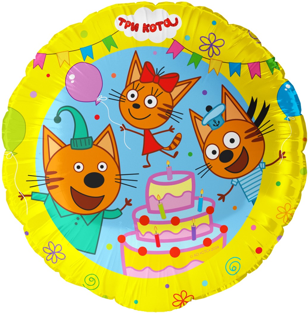 401020 ШФ 18″ (46см) Круг «Три кота, Сладкий день», желтый