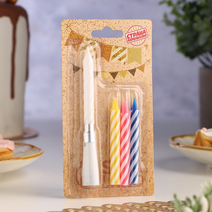 403551 Свечи для торта «Яркая полоска», 7 см, набор (3 витых и музыкальная)