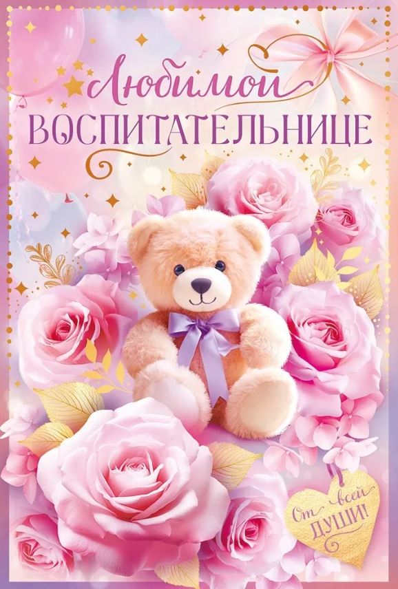 41479 Открытка «Любимой воспитательнице» Мишка А5
