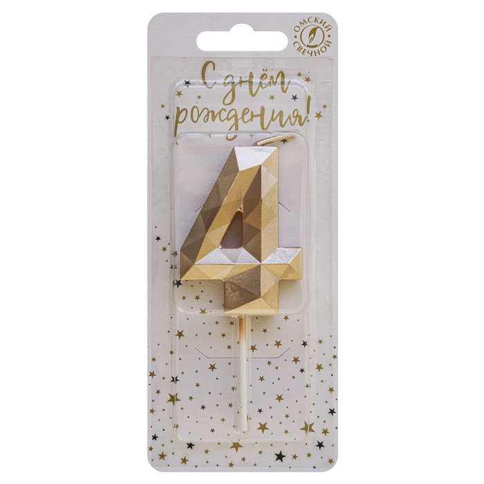 4274 Свеча тортовая цифра «4» «Многогранник» шампань