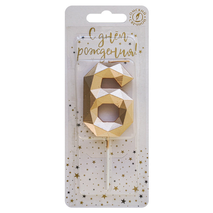 4276 Свеча тортовая цифра «6» «Многогранник» шампань