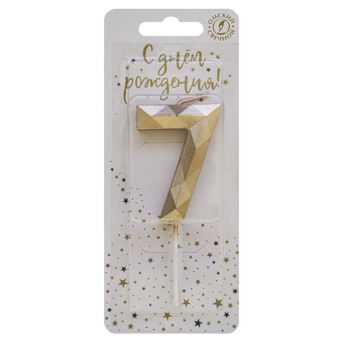 4277 Свеча тортовая цифра «7» «Многогранник» шампань