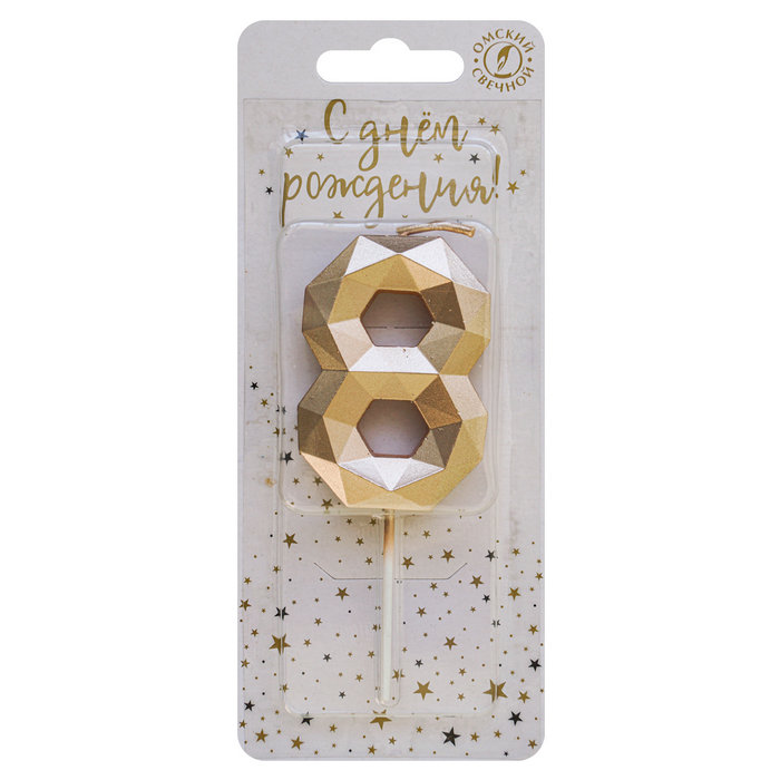 4278 Свеча тортовая цифра «8» «Многогранник» шампань