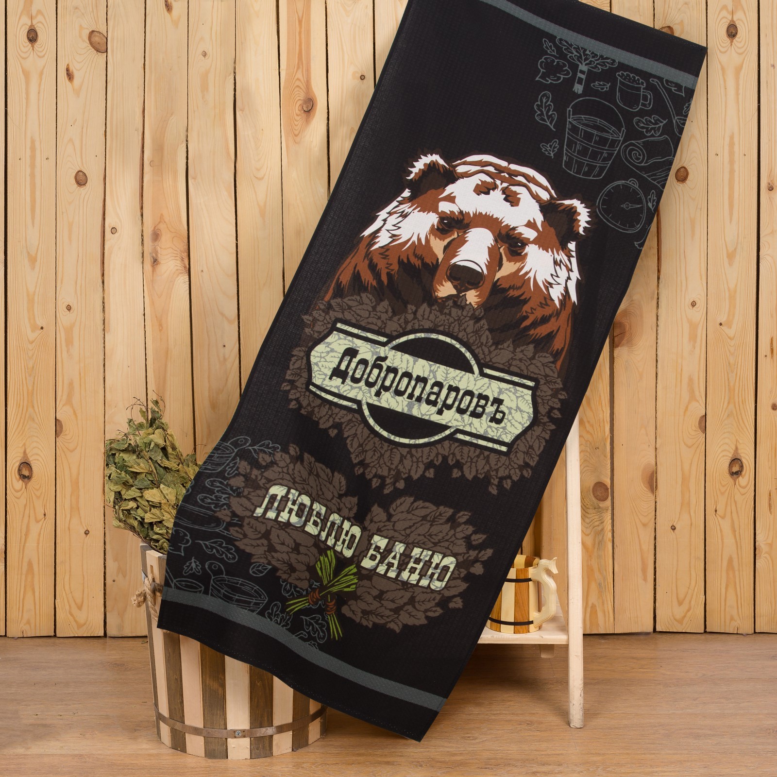 4694870 Полотенце «Люблю баню» 60х146 см, 100% хлопок