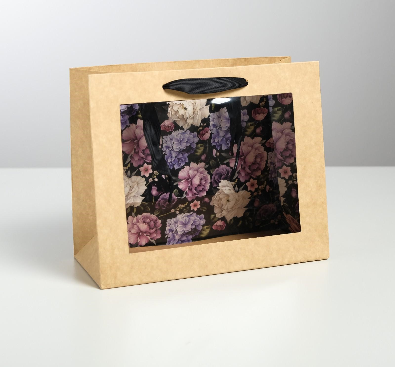 4766891 Пакет крафтовый с пластиковым окном «Flowers», 24 х 20 х 11см