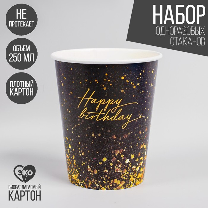 4817882 Стакан одноразовый бумажный «Happy Birthday», 250 мл