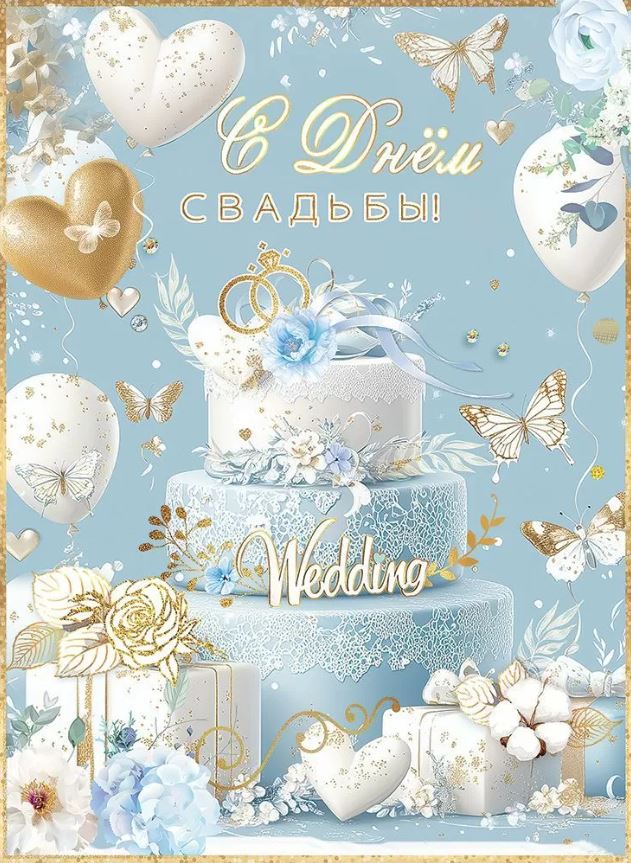 50000106 Открытка с конвертом «С Днем свадьбы!» Голубой торт А4