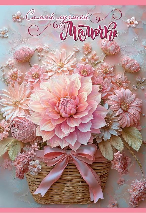 50000137 Открытка «Самой лучшей мамочке» корзина с цветами А5