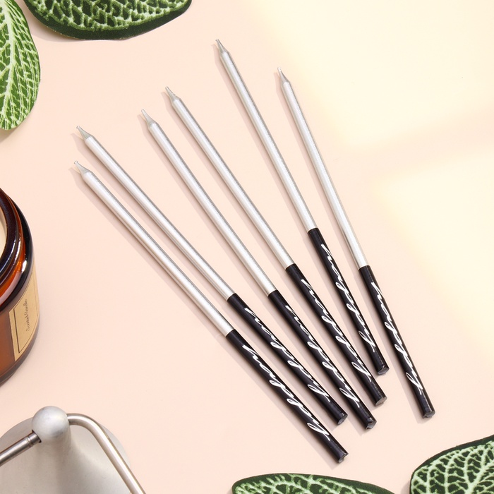 5122207 Свечи в торт «Праздник», 6 шт, 14,5 см, серебро с чёрным