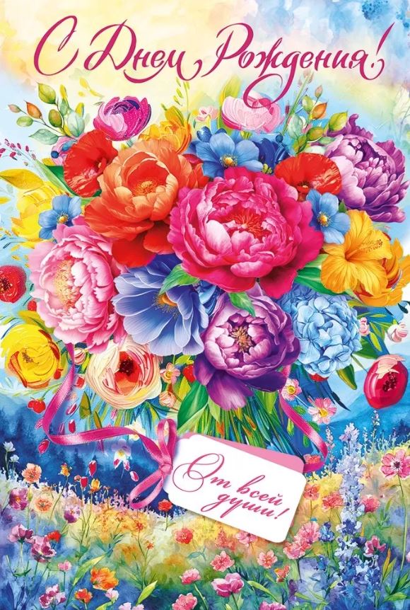 52915 Открытка «С Днем рождения!» Пионы А5