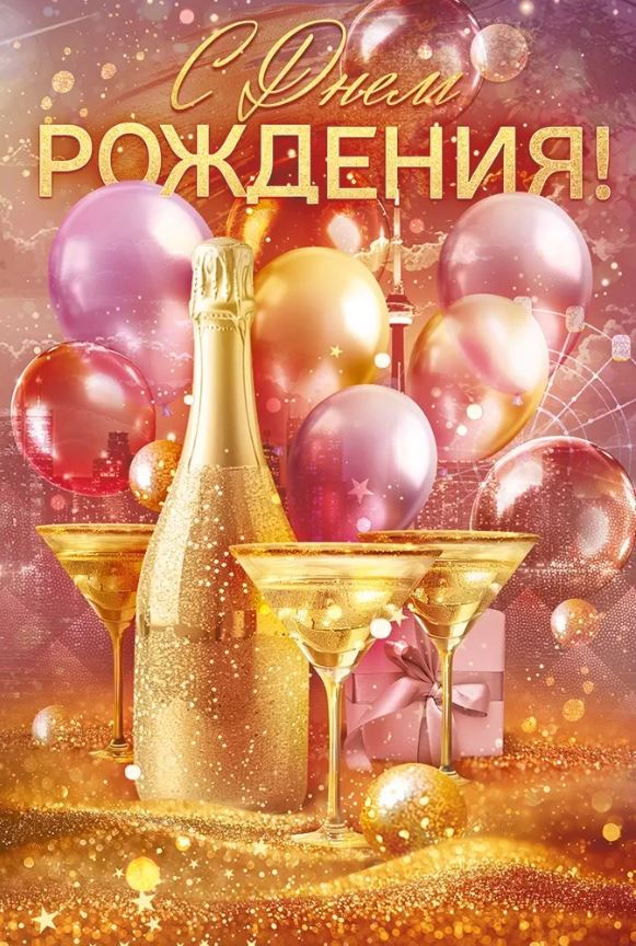 52922 Открытка «С Днем рождения!» Шампанское А5