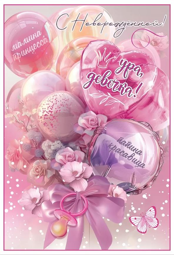 5301122 Открытка «С Новорожденной! Ура,девочка!» шары А5