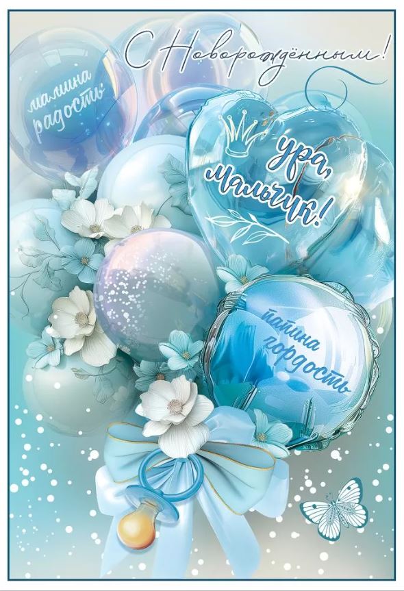 5301123 Открытка «С Новорожденным! Ура,мальчик!» шары А5