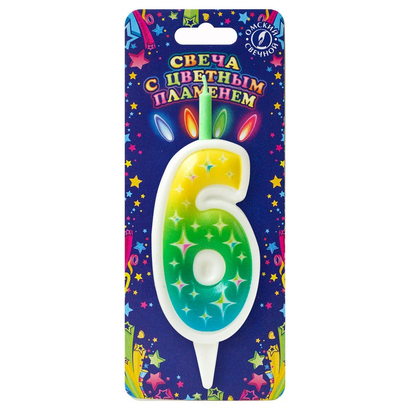 Свеча тортовая «6» цветное пламя.