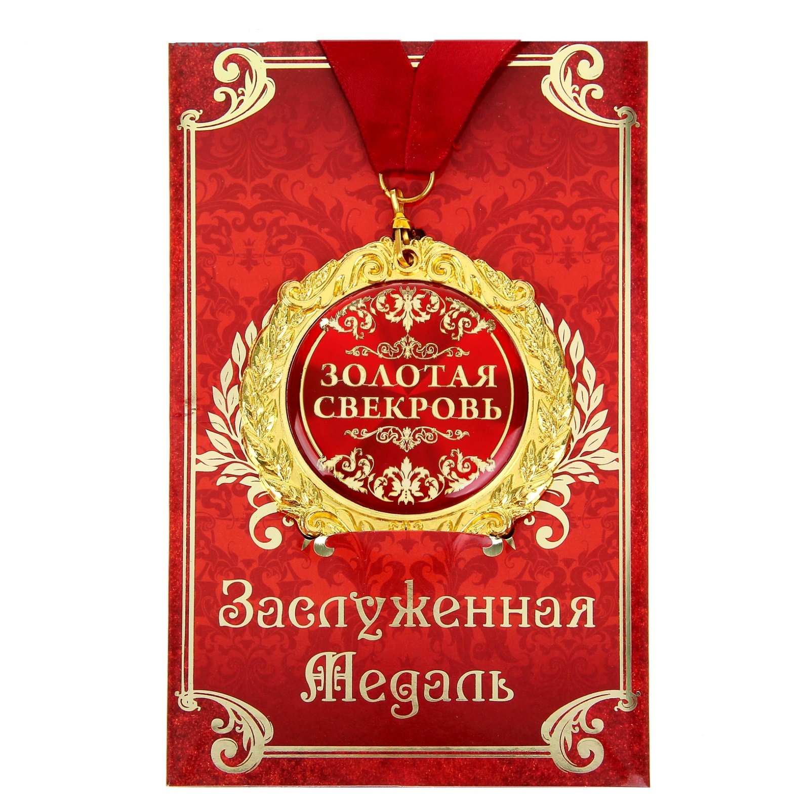 532602 Медаль Золотая свекровь,7см в подарочной открытке