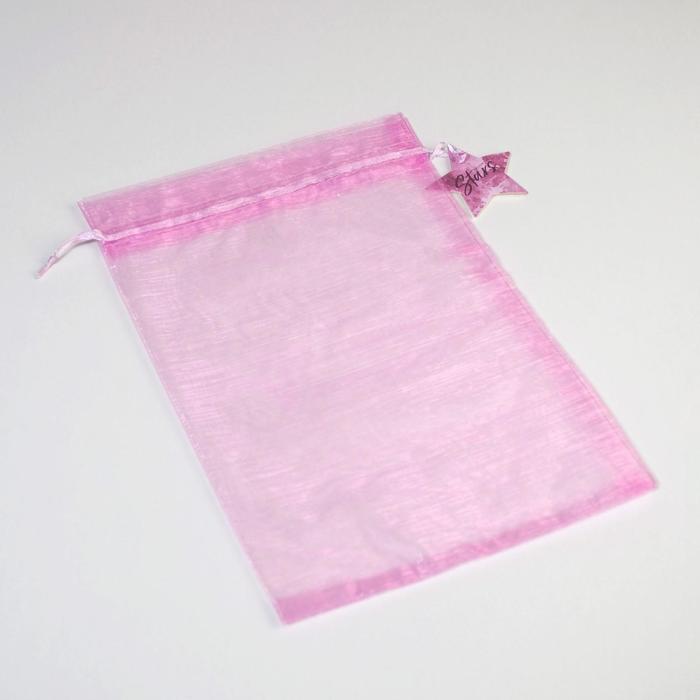 5374816 Мешочек подарочный органза фиолетовый «Звезды», с шильдиком, 20 х 30 см