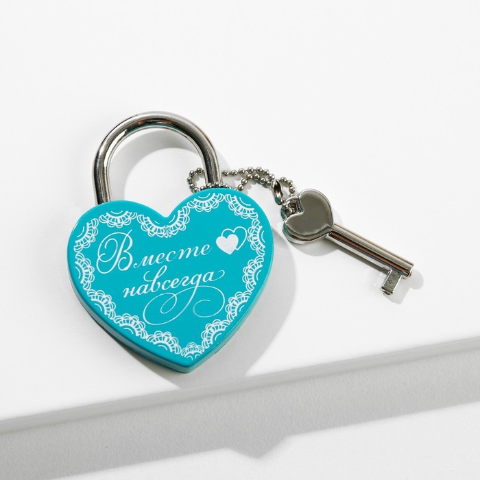 5399422 Замок свадебный с ключом «Вместе навсегда», с белым нанесением, бирюзовый