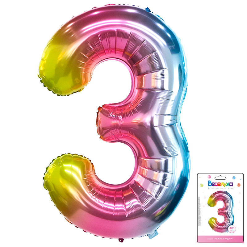 5446835 ШФ 40″ (102см) Цифра «3» Радуга в уп