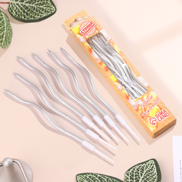 5541549 Свечи для торта «Серпантин» 6 шт, 12 см, коктейльные, серебристые