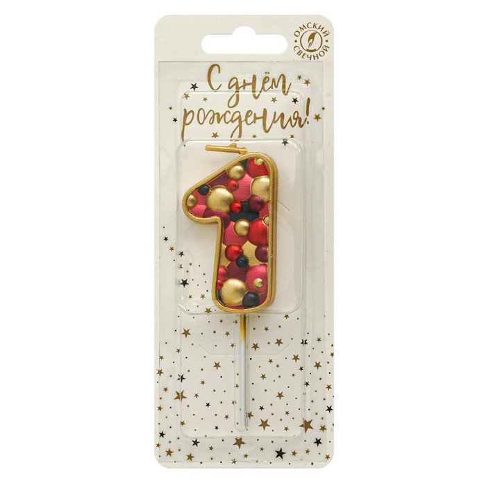 5571 Свеча тортовая цифра «1» пузырьки золото