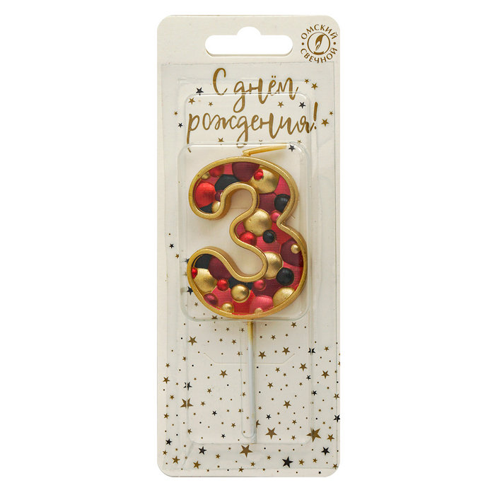 5573 Свеча тортовая цифра «3» пузырьки золото