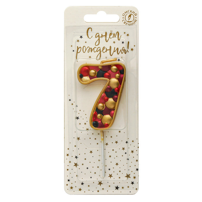 5577 Свеча тортовая цифра «7» пузырьки золото