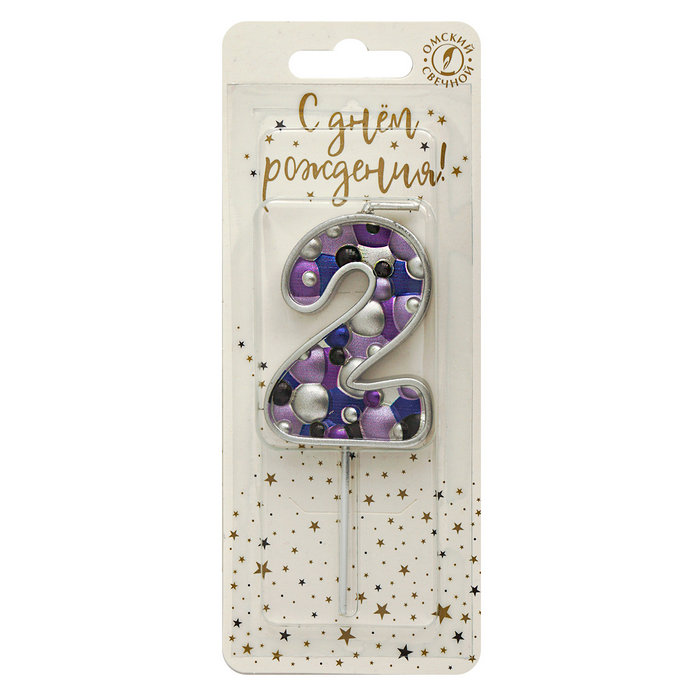 5582 Свеча тортовая цифра «2» пузырьки серебро