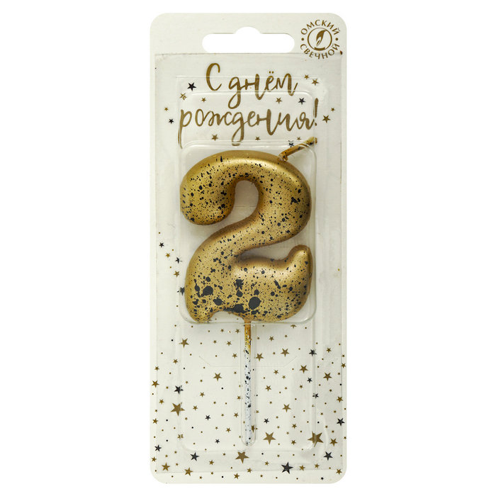 5652 Свеча тортовая цифра «2» золотые брызги
