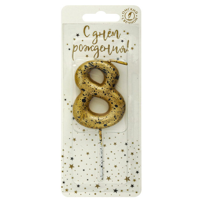 5658 Свеча тортовая цифра «8» золотые брызги
