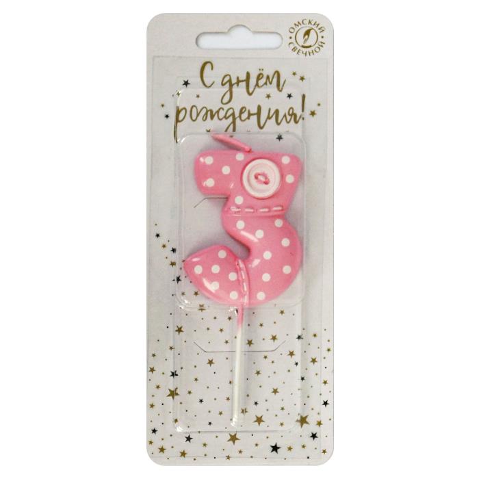 5793 Свеча тортовая цифра «3» розовая с пуговкой
