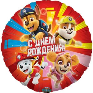 6533861 ШФ 18″ (46см) Круг «Щенячий Патруль, С Днем Рождения!», синий