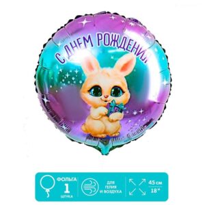 6932456 ШФ 18″ (46см) Круг «С днём рождения», зайка, упак