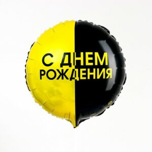6932461 ШФ 18″ (46см) Круг «С Днем Рождения» черно-желтый , упак