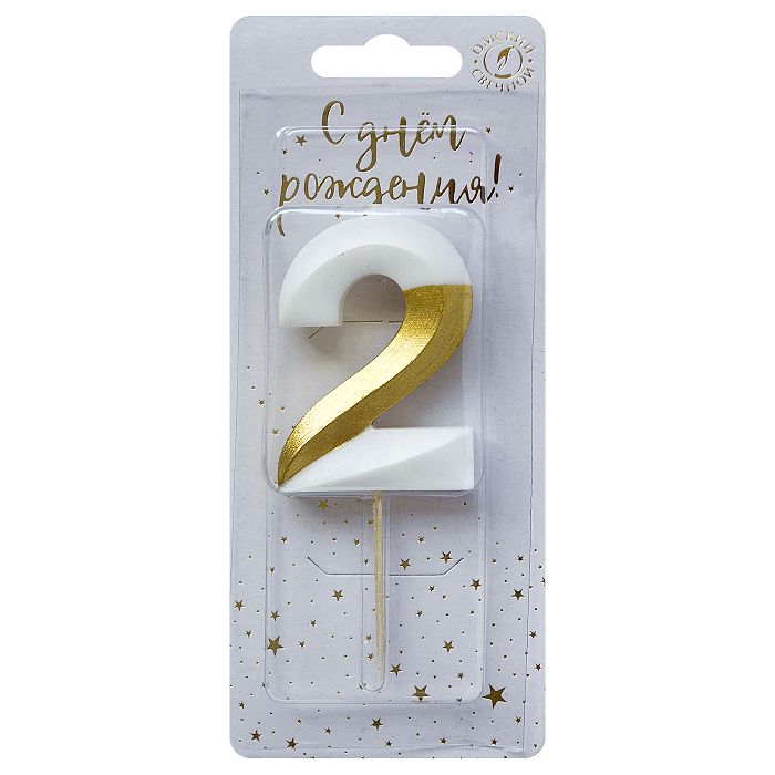 6502 Свеча тортовая цифра «2» бело-золотая витая
