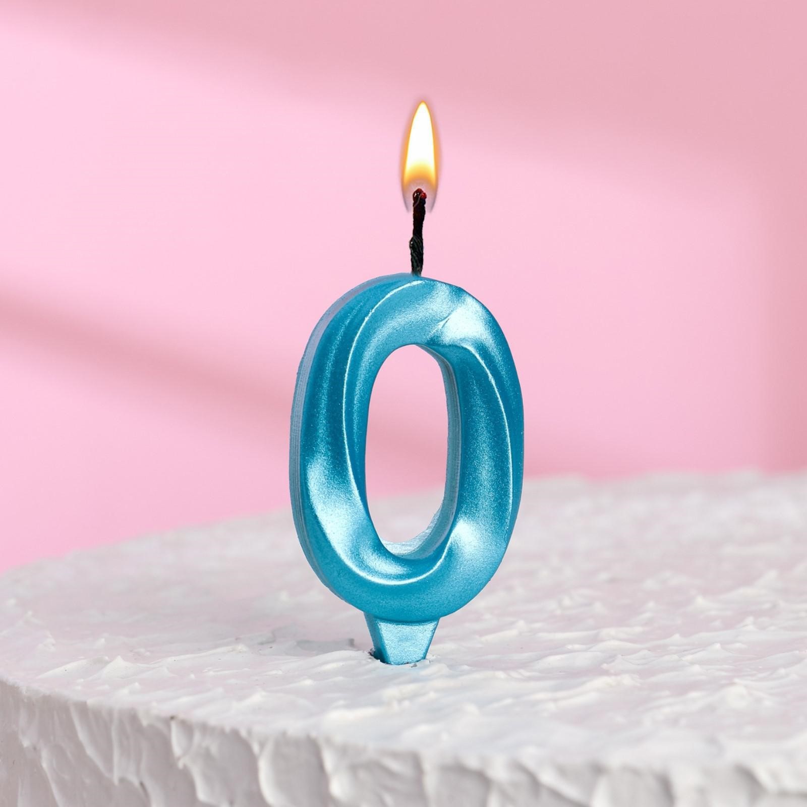 6536329 Свеча тортовая цифра «0» «Грань», голубой металлик