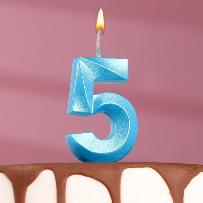6536334 Свеча тортовая цифра «5» «Грань», голубой металлик