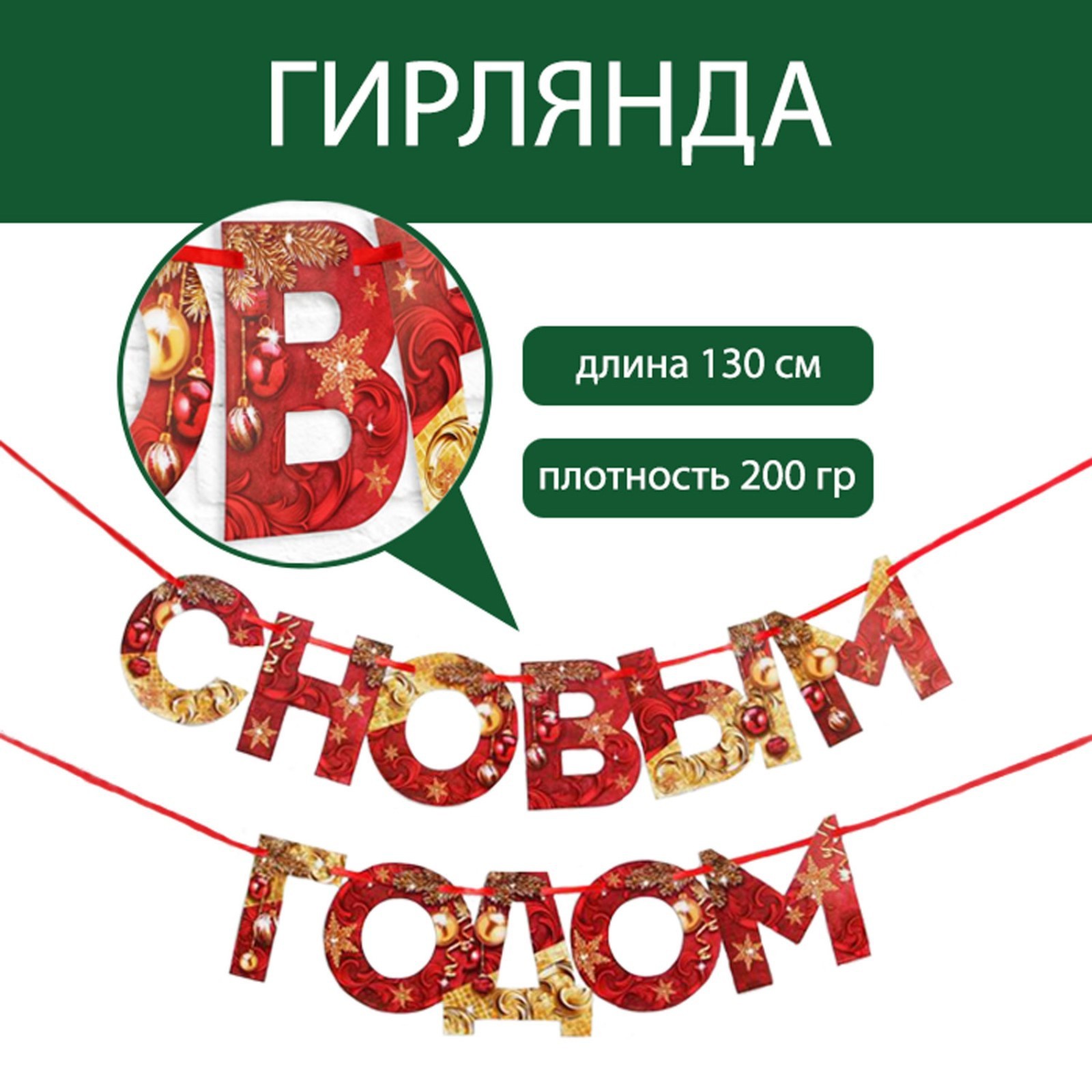 6935759 Гирлянда на ленте «С новым годом», красно/золотая, 130 см
