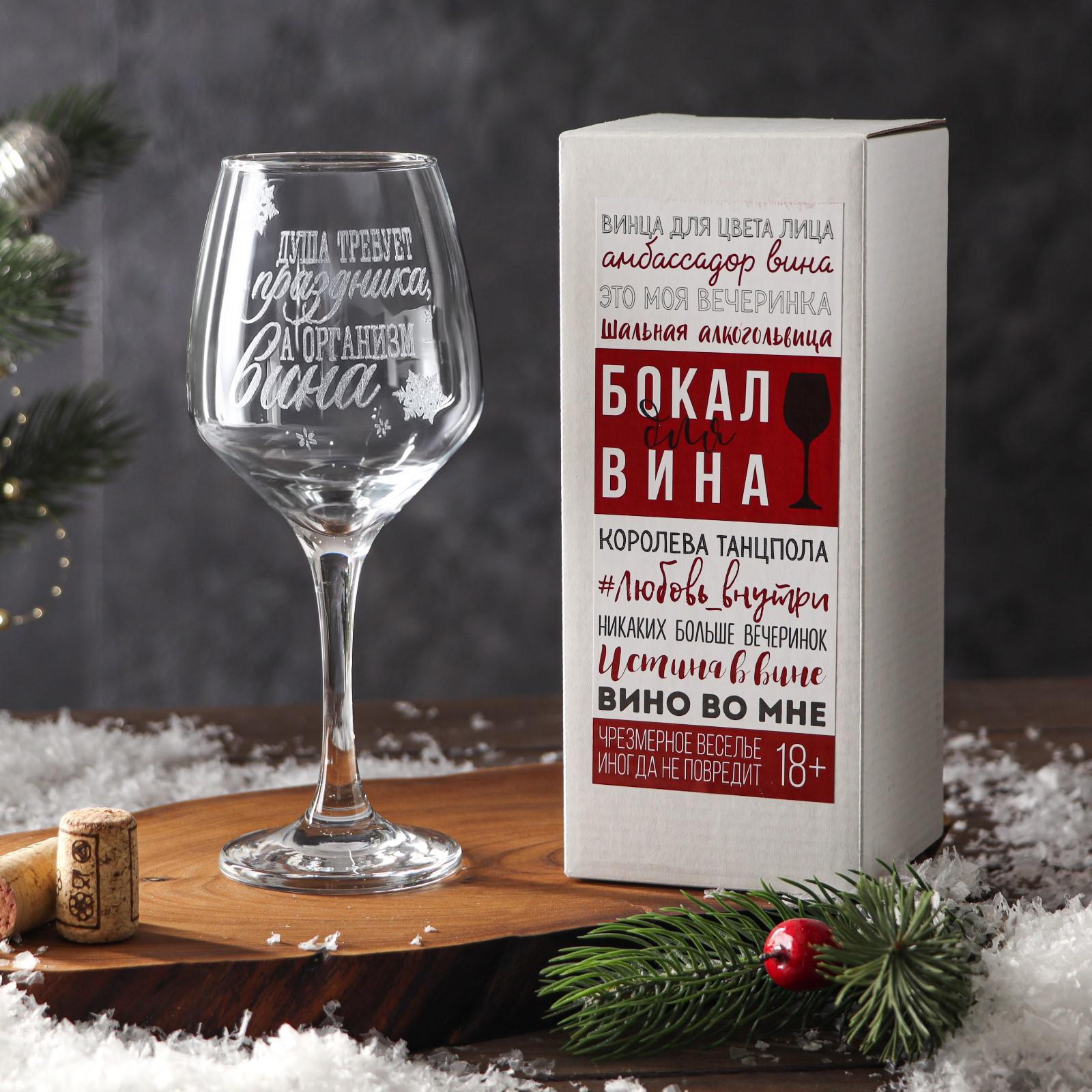 6973976 Бокал для вина «Душа требует праздника» 350 мл, гравировка