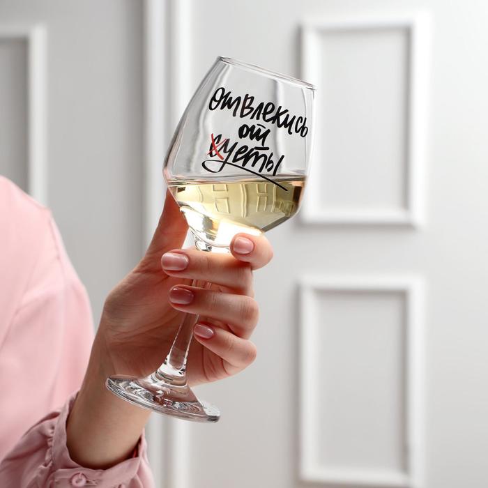 6973978 Бокал для вина «Отвлекись от суеты» 350 мл, тип нанесения рисунка: деколь