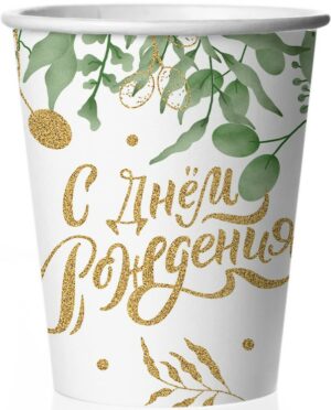 77302 Стаканы 250 мл С Днем Рождения! (изящные листья), 6 шт.