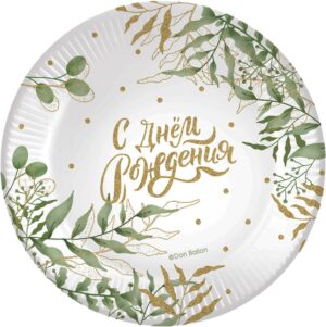 77304 Тарелки 18 см С Днем Рождения! (изящные листья), 6 шт.
